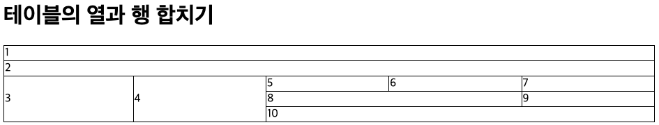 - colspan 속성을 사용하면 테이블의 열(column)을 합칠 수 있습니다.