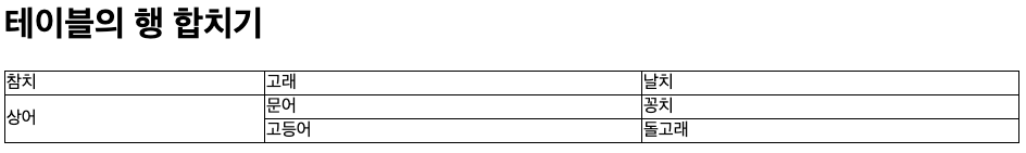 - rowspan 속성을 사용하면 테이블의 행(row)을 합칠 수 있습니다.