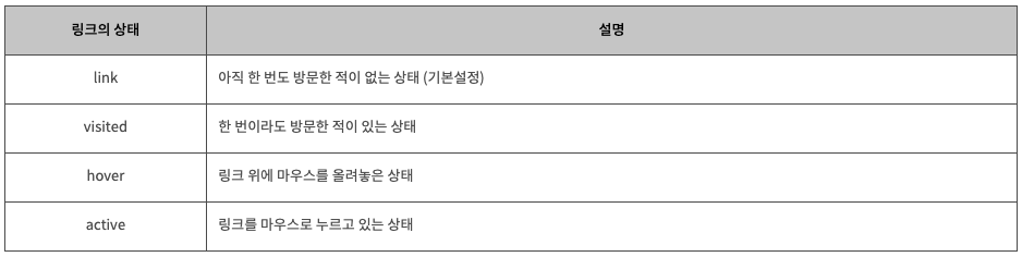 HTML 링크의 상태는 다음과 같이 네 가지로 구분할 수 있습니다.