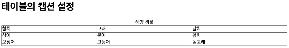- <caption>태그를 사용하면 테이블 상단에 제목이나 짧은 설명을 붙일 수 있습니다.