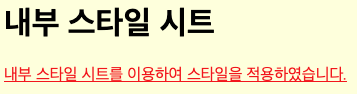- 이러한 내부 스타일 시트는 해당 HTML 문서에만 스타일을 적용할 수 있습니다.