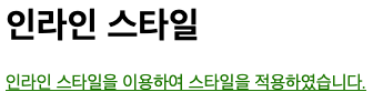 인라인 스타일을 이용하여 스타일을 적용하였습니다.