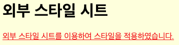 - 또한, 내부 스타일 시트와 외부 스타일 시트는 가장 마지막에 적용된 스타일 시트가 적용됩니다.